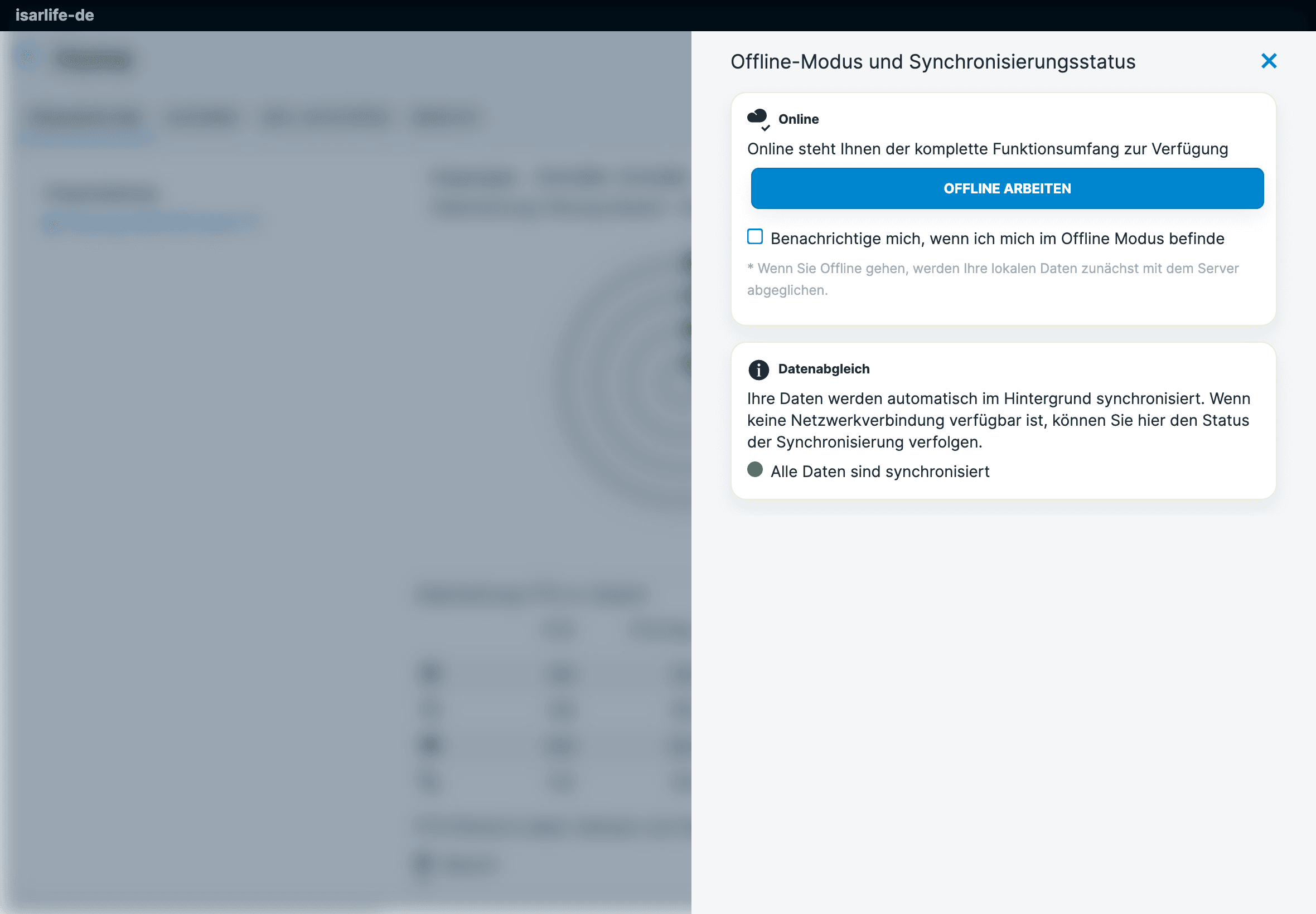 Modus zur Arbeit ohne Internetverbindung mit Zugriff auf: