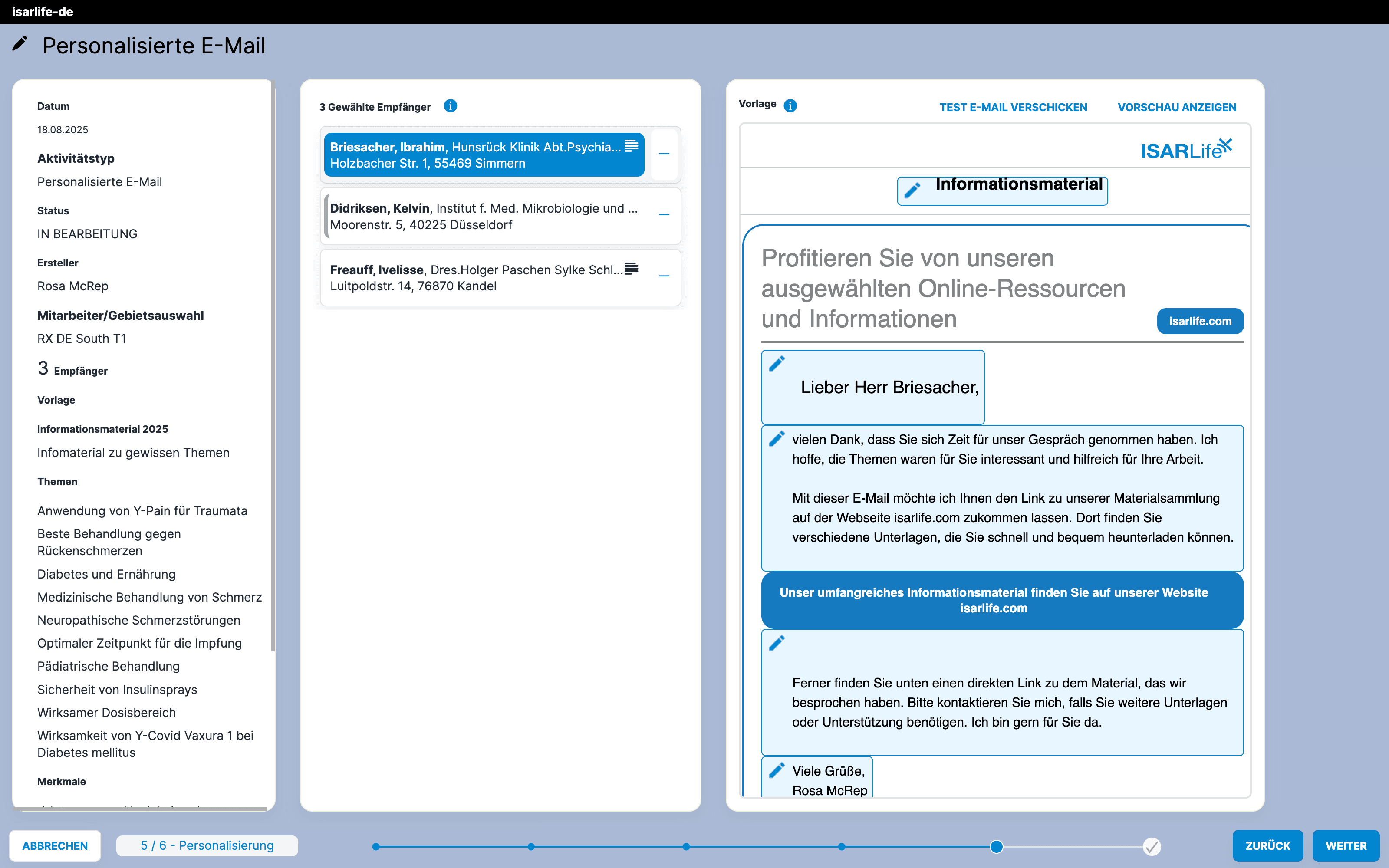 Das Modul Personalisierte E-Mail ermöglicht die Erstellung und den Versand von compliant und DSGVO-konformen E-Mails.