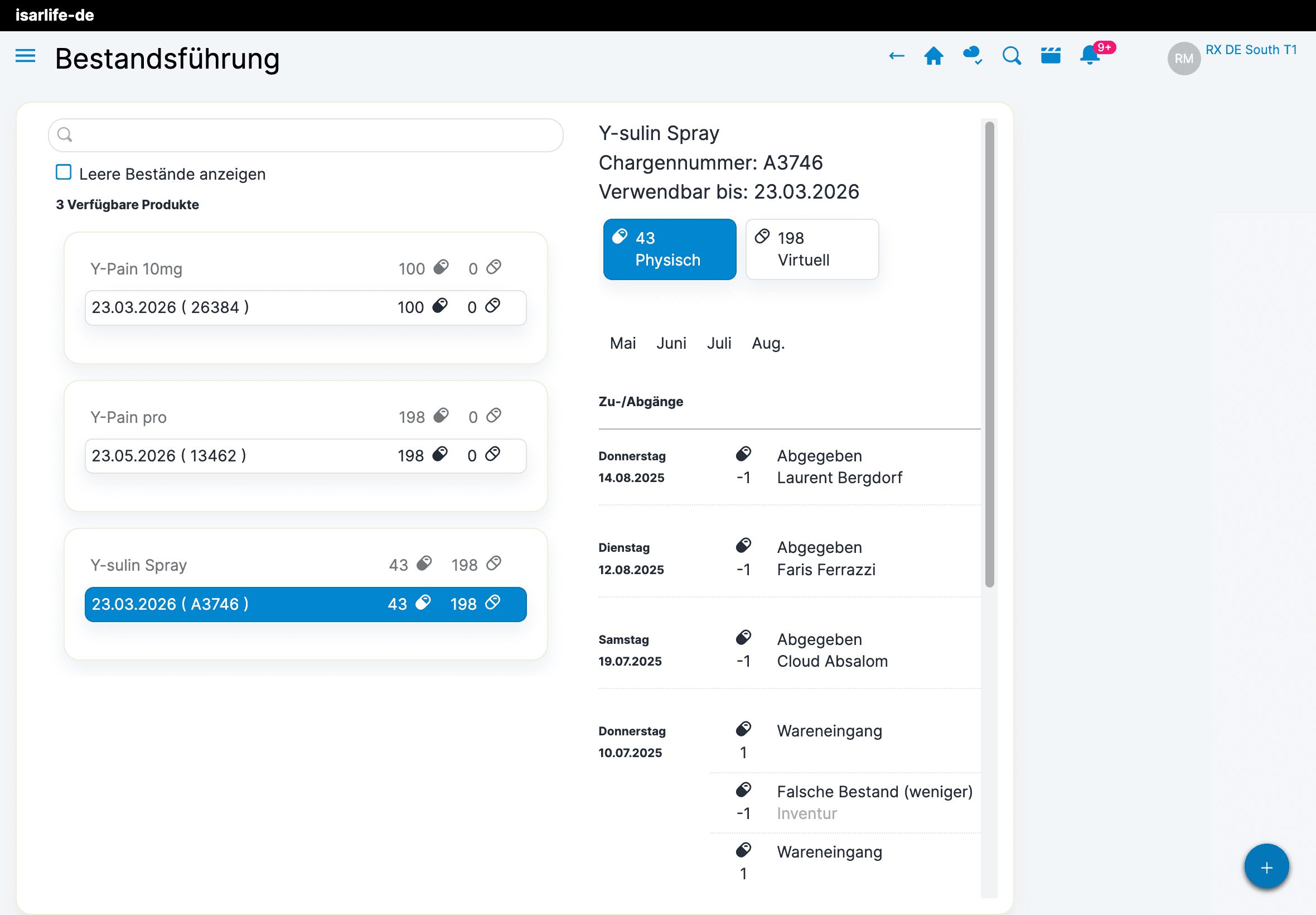 Ein integriertes Regelwerk gewährleistet die Einhaltung gesetzlicher Vorschriften, etwa durch die Überwachung der maximalen Abgabemenge pro Jahr. Das Modul dokumentiert die Musterabgabehistorie pro Kunde und bietet die Möglichkeit zur Anbindung externer Dienstleister für den Musterversand.