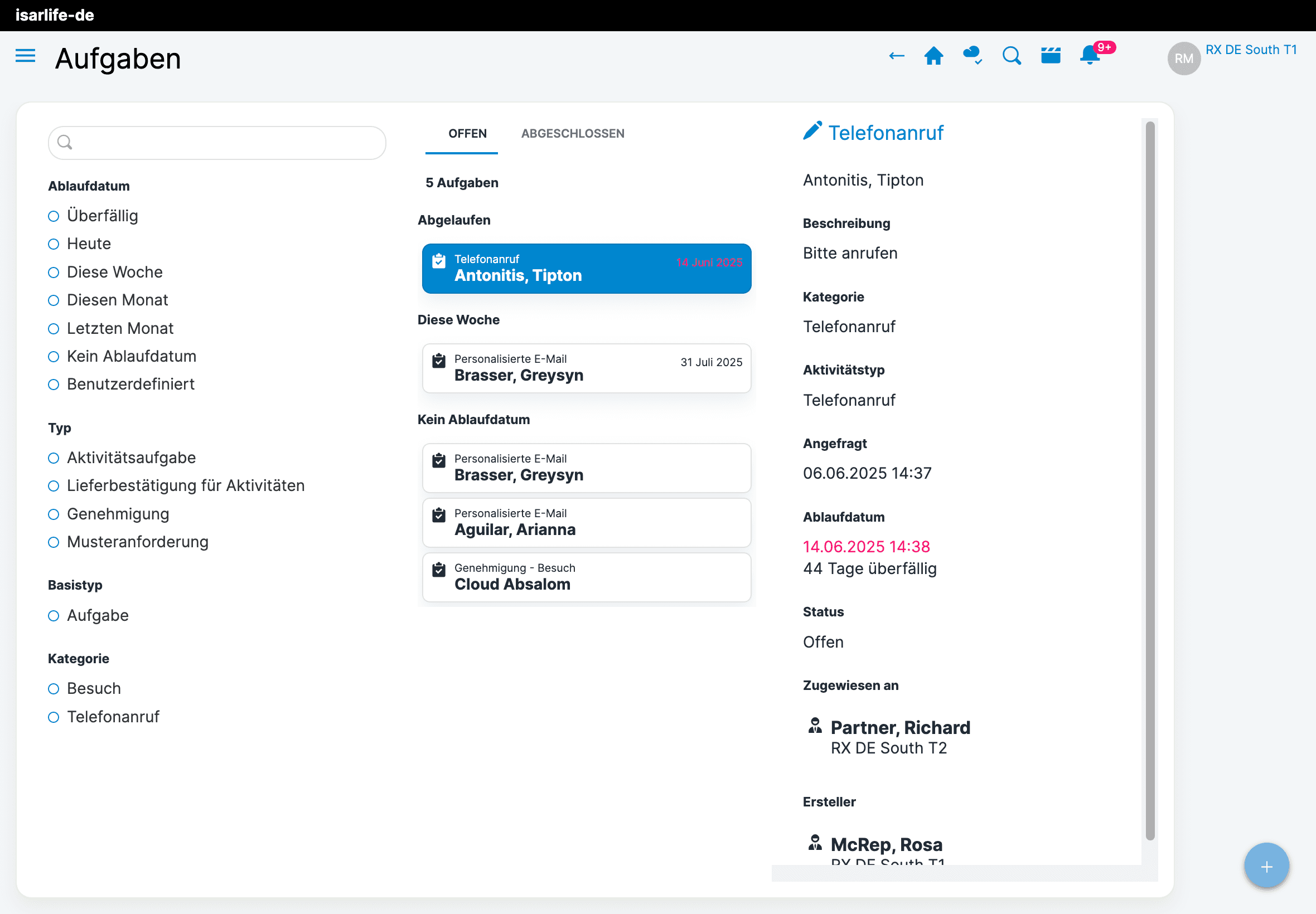Filterung nach Status, Fälligkeit und Typ