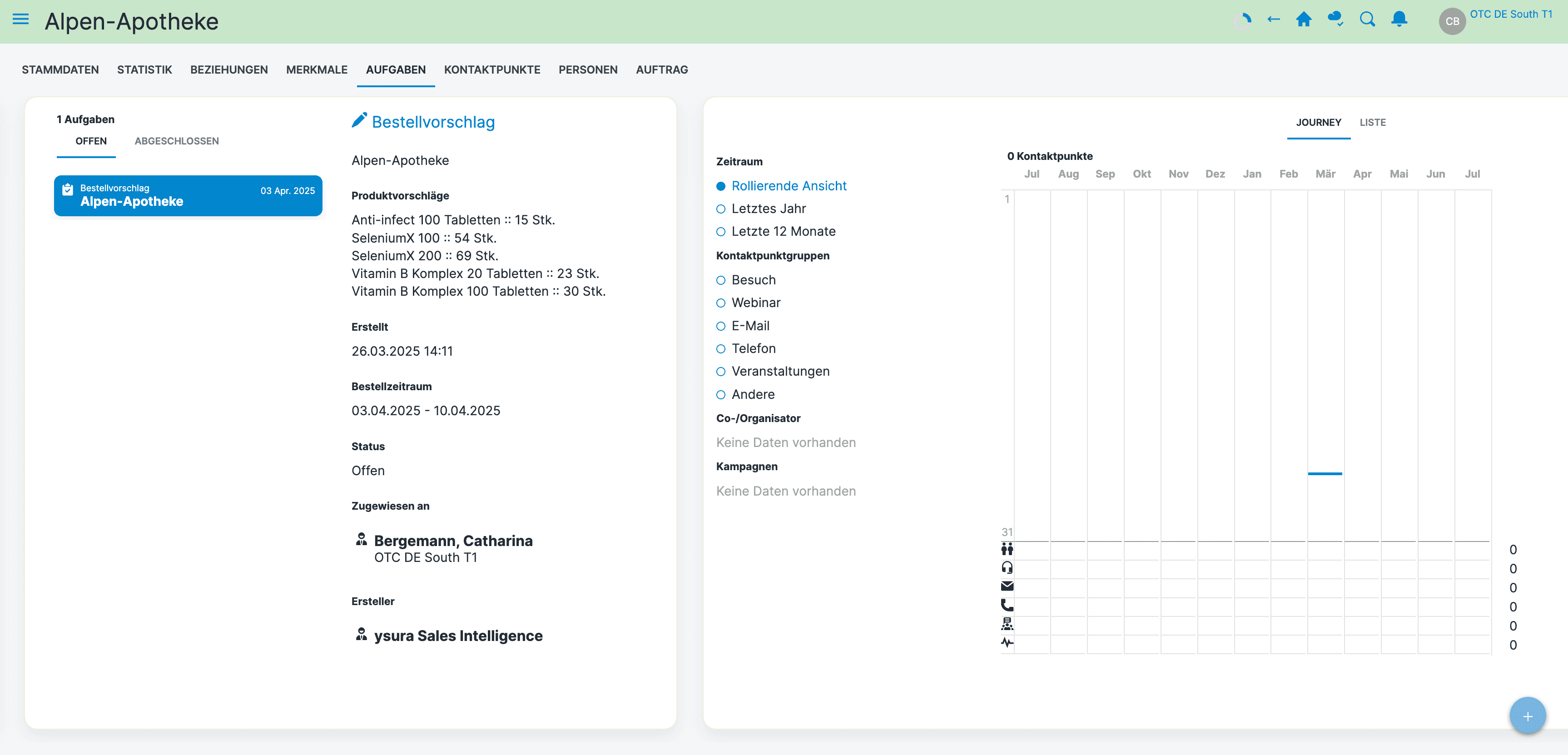 Calculation of the next best contact recommendations thanks to high-quality customer data in ysura CRM and artificial intelligence from simcog