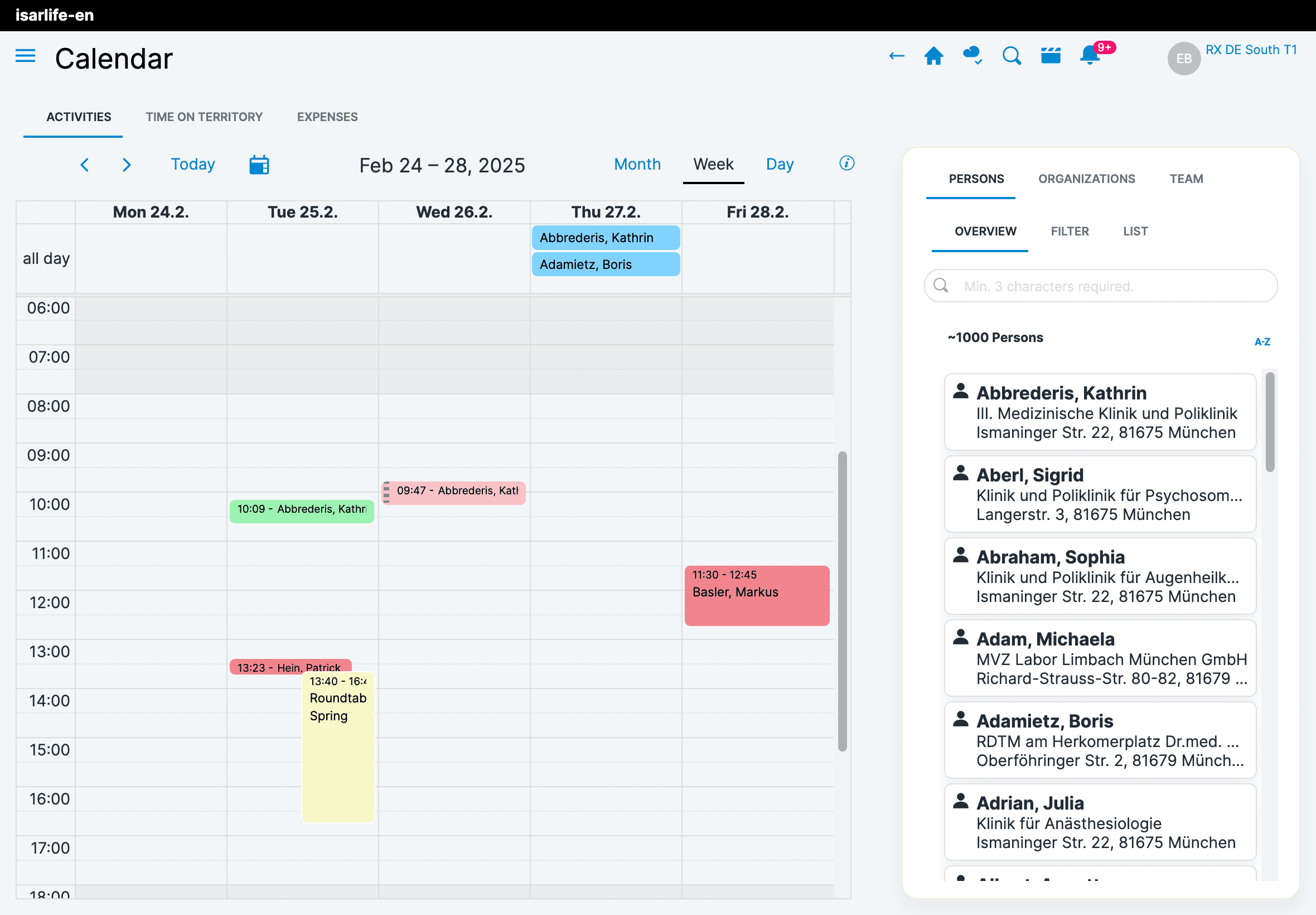The CRM system offers a comprehensive calendar function for managing and displaying activities and events in a monthly, weekly, or daily view.Activities can be planned and adjusted using drag-and-drop functionality, and the configurable team calendar visibility feature allows colleagues' schedules to be viewed. Individual calendar sharing can be used to grant specific access rights, and working time settings ensure that appointments are only scheduled in defined time slots, guaranteeing clarity in scheduling. An iCal feed allows users to subscribe to calendar data in iCalendar format (.ics) from the CRM system and display it in other calendar applications.